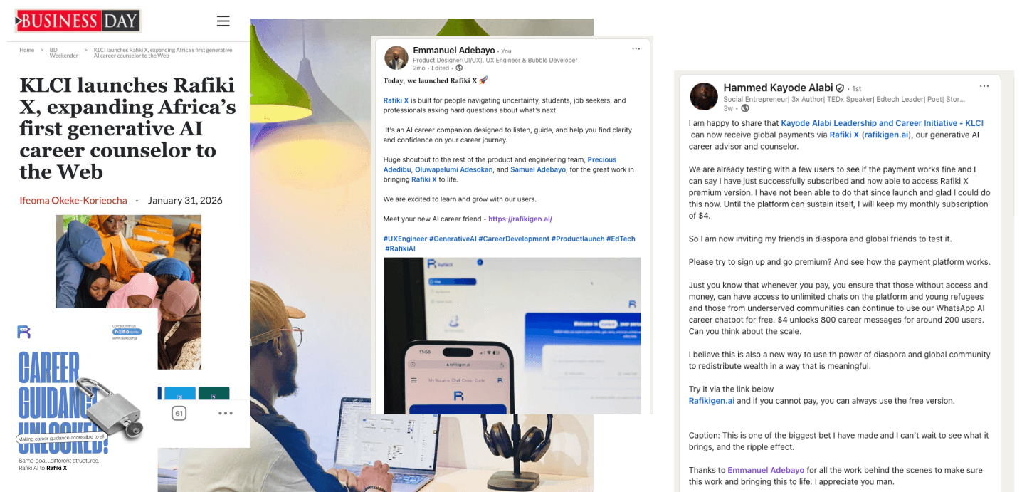 Instead of starting from zero, Rafiki X understands who the user is, their background, and what they’re trying to achieve. This made every interaction more relevant and actionable.